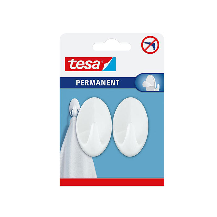 Tesa Permanent Hooks Oval White 2 Hooks L