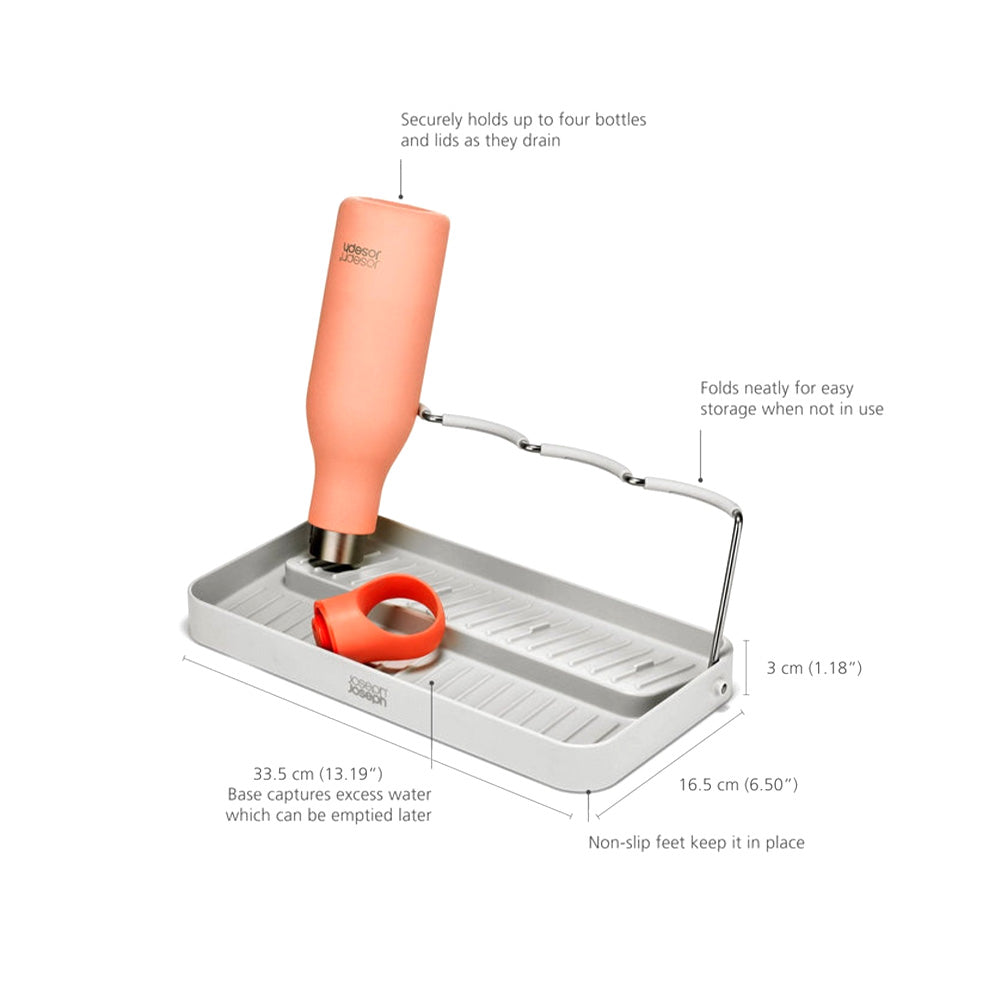Dry up to four bottles at once with this space-saving folding bottle drying rack. It features a drip-catching base and folds neatly for compact storage when not in use.